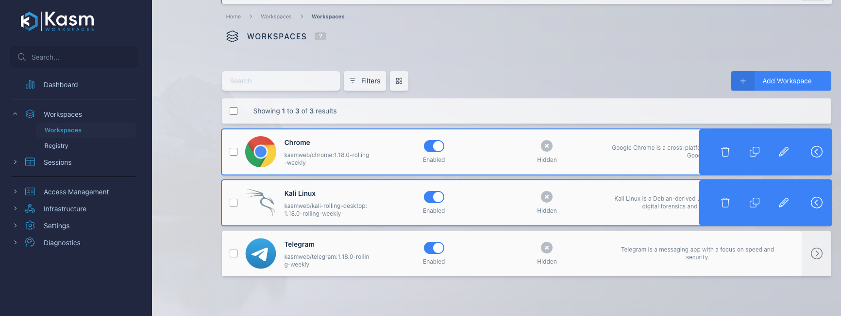 Kasm Workspaces 是在浏览器里运行完整应用/桌面/浏览器的 云工作空间平台