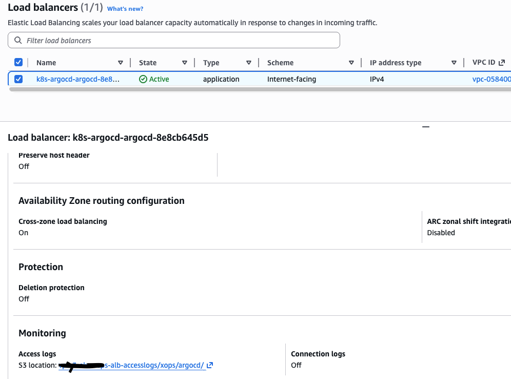 alb.ingress.kubernetes.io/load-balancer-attributes: access_logs.s3.enabled=true,access_logs.s3.bucket=<你的-s3-bucket-名字>,access_logs.s3.prefix=<logs-prefix>配置指定启用 Access Logs 写入 S3,指定日志写入 S3 中的路径,多项目多集群可以按照项目或集群多目录分割,如 access_logs.s3.prefix=EKS_CLUSTER_A/PROJECT_A
